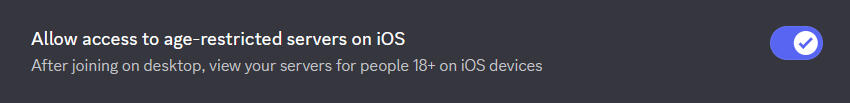 IOS users need to enable age-restricted servers using the Discord web browserSettings -> Content & Social